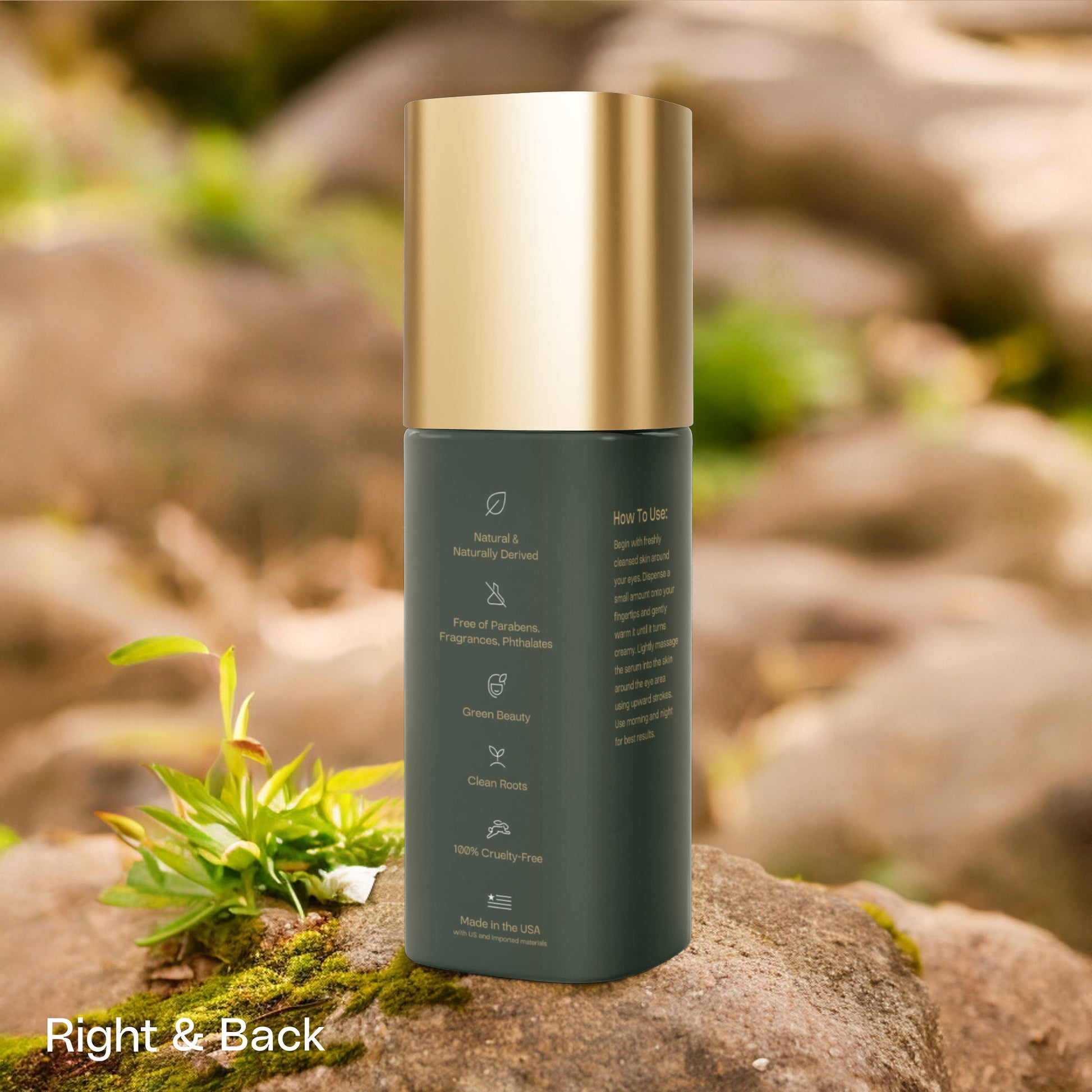 Begin with freshly cleansed skin around your eyes. Dispense a small amount onto your fingertips and gently warm it until it turns creamy. Lightly massage the serum into the skin around the eye area using upward strokes. Use morning and night for best results.